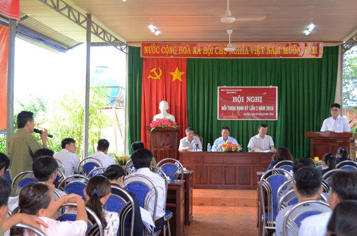 Từ ngày 10/7 - 18/7/2018 có 8 Nông trường và 2 Xí nghiệp tổ chức đối thoại cấp cơ sở. Tổ đối thoại của các đơn vị đã tổ chức đối thoại tại 44 Đội, Xưởng sản xuất. Thành phần tham gia tổ đối thoại gồm đại diện Ban giám đốc đơn vị, Công đoàn, các tổ chức đoàn thể và các bộ phận chuyên môn. Đối thoại cấp cơ sở có hơn 3.000 lượt CB.CNVC-LĐ tham gia. Có 50 ý kiến của CNVC-LĐ được nêu lên, tổ đối thoại cấp cơ sở đã giải đáp thỏa đáng 42 ý kiến trong phạm vi và chức năng cho phép, có 8 ý kiến chuyển lên cấp trên.