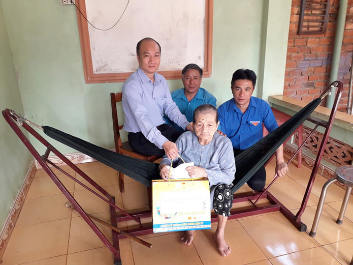 Đ/c Nguyễn Duy Tâm – UV. BTV Đảng ủy, Phó TGĐ Công ty thăm hỏi và tặng quà mẹ Nguyễn Thị Liễu.