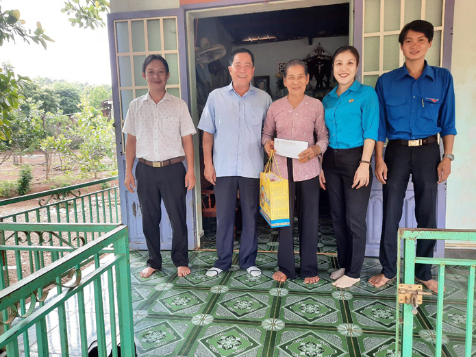 Đ/c Võ Hữu Phúc – UV. BTV Đảng ủy, Trưởng phòng TCKT thăm hỏi và tặng quà cho mẹ Trần Thị Nuôi.
