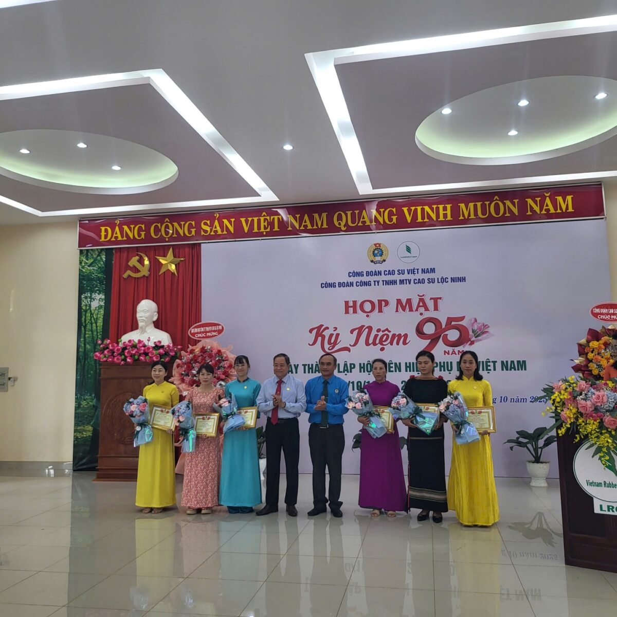 Tại cấp Công ty, chương trình họp mặt kỷ niệm 95 năm Ngày thành lập Hội LHPN Phụ nữ Việt Nam 20/10 được tổ chức trang trọng, ấm cúng với sự tham dự của Lãnh đạo Công đoàn Cao su Việt Nam, lãnh đạo Công ty, Ban Thường vụ, Ban Chấp hành Công đoàn, Chủ tịch các Công đoàn bộ phận cùng 95 nữ công nhân viên chức lao động tiêu biểu.
