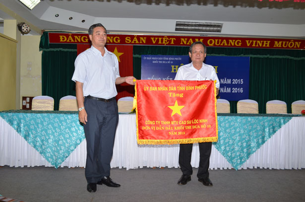Tại hội nghị tổng kết công tác thi đua năm 2015 Khối thi đua số 10 tỉnh Bình Phước, tổ chức sáng 18/3, Công ty TNHH MTV Cao su Lộc Ninh được UBND tỉnh tặng cờ Đơn vị dẫn đầu khối.