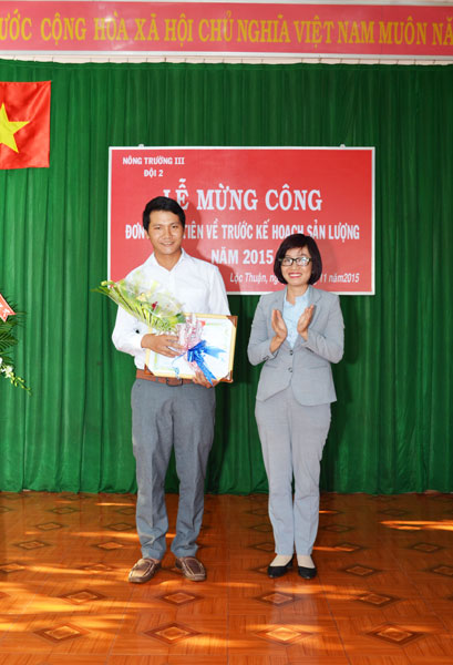 Trong không khí sôi nổi tại Lễ mừng công tại Đội 2 - Nông trường VII, đơn vị về trước kế hoạch sản lượng 50 ngày, ông Nguyễn Lê Du - Phó giám đốc Nông trường VII cho biết: Toàn nông trường có 29 công nhân vượt kế hoạch sản lượng trước 60 ngày, riêng Đội 2 đã có đến 20 công nhân. Tấc cả các công nhân có thành tích xuất sắc đều được Công đoàn, Đoàn Thanh niên công ty, lãnh đạo nông trường khen thưởng kịp thời nhằm khích lệ, động viên, chia sẻ thành quả lao động sản xuất với công nhân.