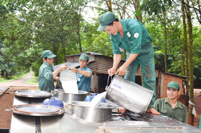 Chị Phan Thị An Trung - Tổ 1 - Đội 2 (Nông trường VII) công nhân vượt kế hoạch sản lượng 60 ngày cho biết: Năm 2015 mặc dù khó khăn về giá mủ nhưng Ban lãnh đạo nông trường, đội, tổ đều rất quan tâm đến công nhân. Hiện tại lương bình quân chị Trung lãnh trong 10 tháng là 7,2 triệu đồng gồm (gồm cả lương phụ). Số tiền có thể đáp ứng được cuộc sống sinh hoạt gia đình. Riêng từ tháng 9,10 vừa qua, lương chị Trung nhận xấp xỉ 10 triệu đồng nhờ vượt kế hoạch sản lượng. Chị Trung chia sẻ.