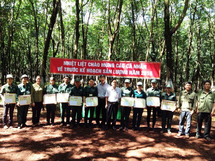 Khi mỗi công nhân về trước kế hoạch sản lượng qua phong trào thi đua nước rút 3 tháng cuối năm 2015, công đoàn, đoàn thanh niên công ty đã đến tận lô cao su để kịp thời khen thưởng, động viên công nhân. Ban lãnh đạo Công ty TNHH MTV cao su Lộc Ninh đã gửi thư chúc mừng, trao giấy khen, tiền thưởng động viên tập thể cán bộ, công nhân viên lao động từ cấp tổ, đội đến nông trường tại các buổi lễ mừng công. Ông Trần Thanh Tùng - Chủ tịch công đoàn công ty cho hay.