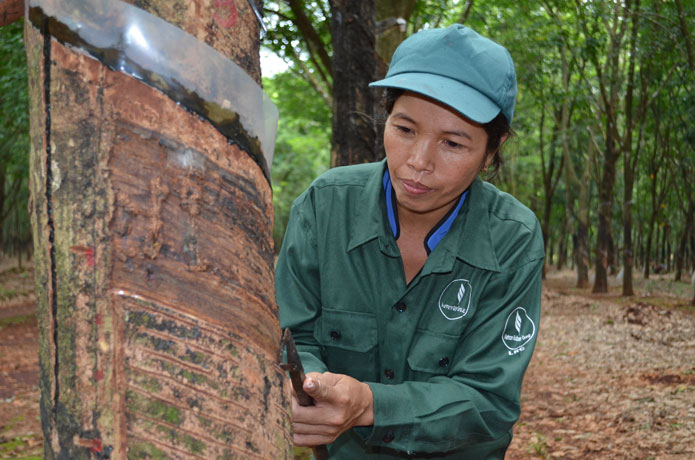 Khi truyền đạt kỹ thuật cạo mủ, mình trực tiếp hướng dẫn trên từng miệng cạo thực tế, không lý thuyết mơ hồ mất thời gian. Vì vậy công nhân tiếp thu và thực hành khá nhanh trong quá trình học” - Chị Hà tâm sự.