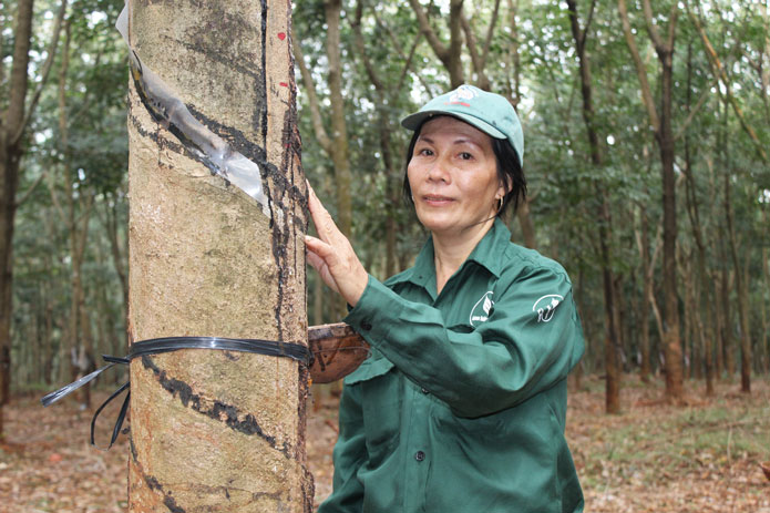 CÔNG NHÂN KHAI THÁC LƯƠNG THỊ NHỊ "CAO SU LÀ NGUỒN SỐNG CỦA GIA ĐÌNH"