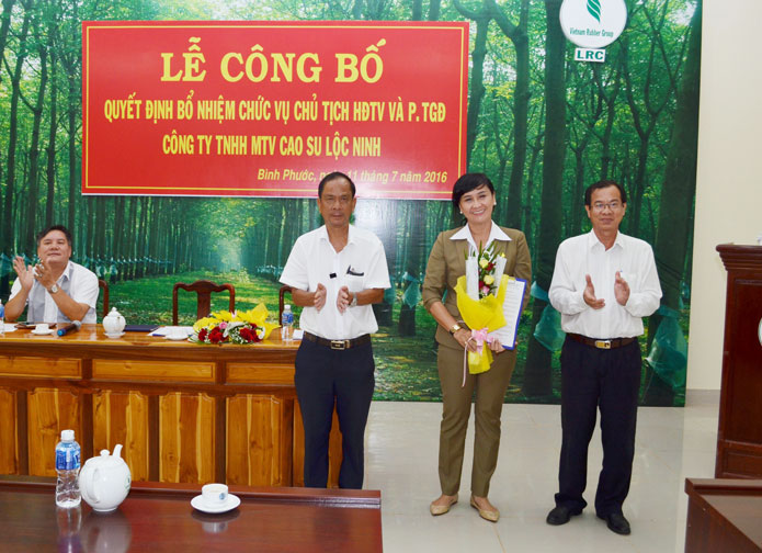 Kể từ ngày 01/7/2016, Bà Đặng Kim Tuyến - Trưởng phòng Quản lý chất lượng được bổ nhiệm chức danh Phó Tổng Giám đốc Công ty Cao su Lộc Ninh.