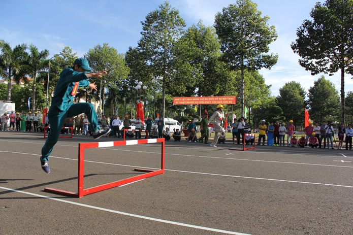 VĐV Hoàng Công Bình đạt giải Nhì trong phần thi chạy 100m vượt chướng ngại vật
