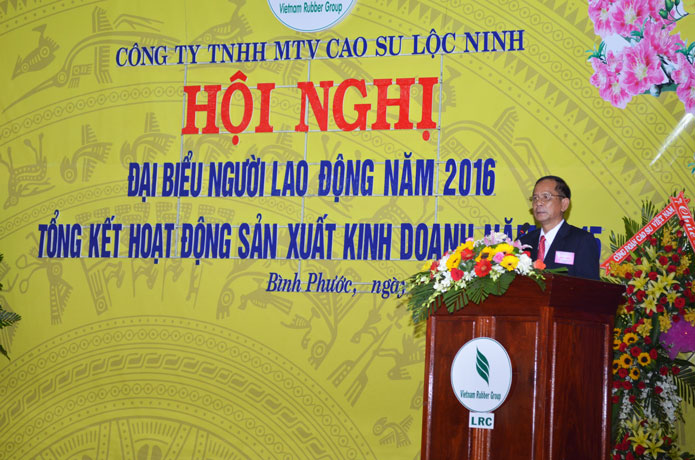 Đó cũng là lời phát biểu của ông Võ Sỹ Lực - Chủ tịch HĐTV Tập đoàn Công nghiệp Cao su Việt Nam (VRG) tại Hội nghị người lao động năm 2016 và Tổng kết hoạt động sản xuất kinh doanh năm 2015 của Công ty TNHH MTV Cao su Lộc Ninh (Công ty Cao su Lộc Ninh) vừa diễn ra vào ngày 29/01/2016. Trước đó Hội nghị đã tiến hành bầu 3 đồng chí vào Ban thanh tra nhân dân và 5 đồng chí Ban đại diện người lao động Công ty nhiệm kỳ năm 2016 - 2017.