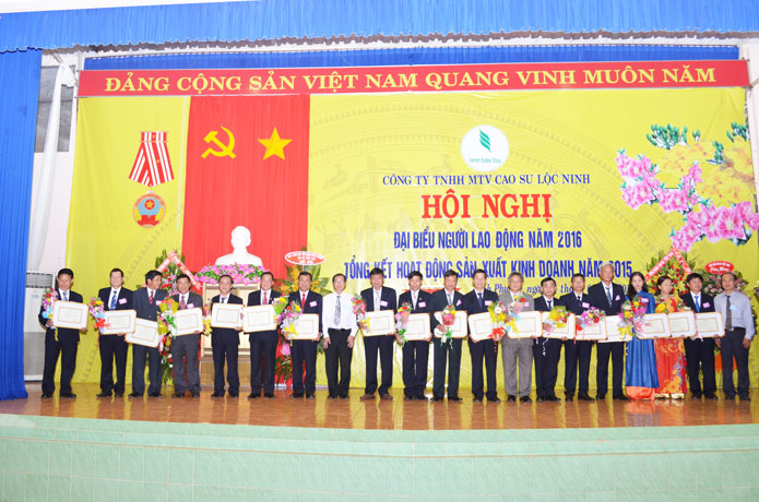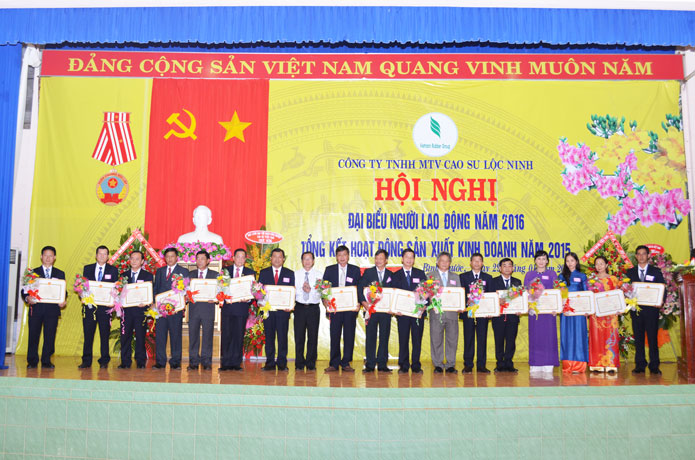 Năm 2015, Công ty Cao su Lộc Ninh vinh dự được Bộ NN&PTNT tặng Cờ thi đua xuất sắc; 18 tập thể được Bộ NN và PTNT tặng Bằng khen; Tập đoàn VRG tặng Kỷ niệm chương cho 135 cá nhân; Cờ thi đua xuất sắc cho Công ty VKETI; danh hiệu Lao động xuất sắc cho 39 tập thể, tặng Bằng khen cho 39 tập thể và 203 cá nhân; Công ty Cao su Lộc Ninh đã đã xét khen thưởng cho 195 tập thể, 447 Chiến sĩ thi đua, 3.191 Lao động tiên tiến.