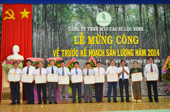 Ngày 10/12/2014 Công ty TNHH MTV cao su Lộc Ninh tổ chức lễ mừng công hoàn thành kế hoạch sản lượng năm 2014.