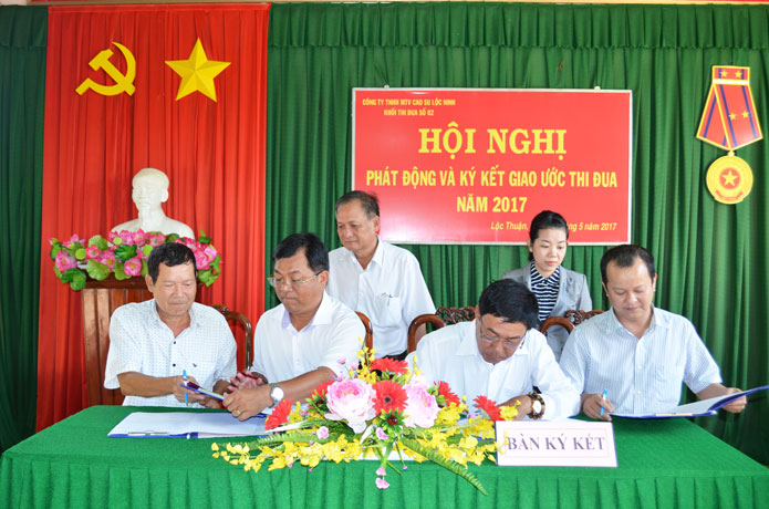 Thực hiện chỉ đạo của Tập đoàn Công nghiệp Cao su Việt Nam về việc thành lập khối thi đua cấp Nông trường, Nhà máy, Xí nghiệp trong các đơn vị thành viên. Ngày 29/3/2017 Công ty TNHH MTV Cao su Lộc Ninh đã quyết định thành lập 03 Khối thi đua cấp Nông trường, Nhà máy, Xí nghiệp. Trong đó 02 khối gồm các nông trường trực tiếp khai thác mủ và 01 khối gồm các đơn vị sản xuất chế biến, phục vụ.