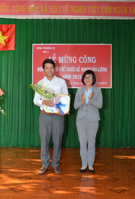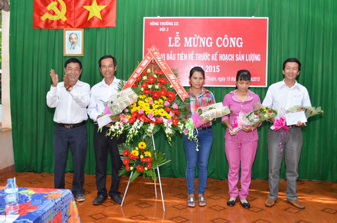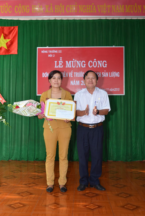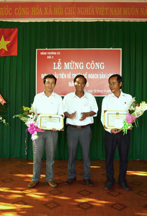 Tại buổi Lễ mừng công, Công đoàn, Đoàn Thanh niên Công ty, Ban lãnh đạo Nông trường III cũng đã trao thưởng hoàn thành xuất sắc kế hoạch sản lượng năm 2015 cho Đội 2.
