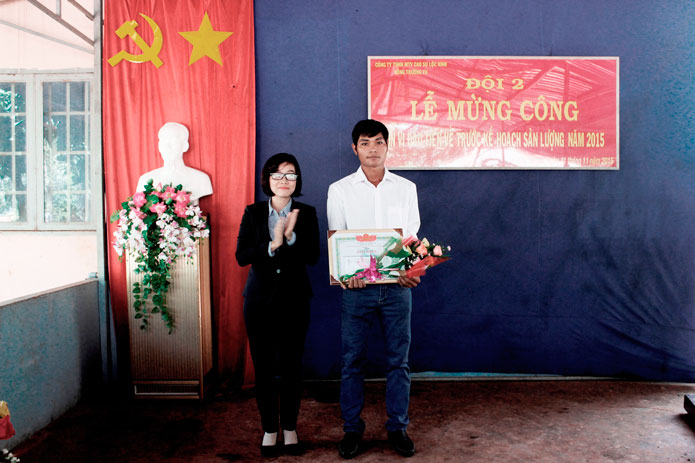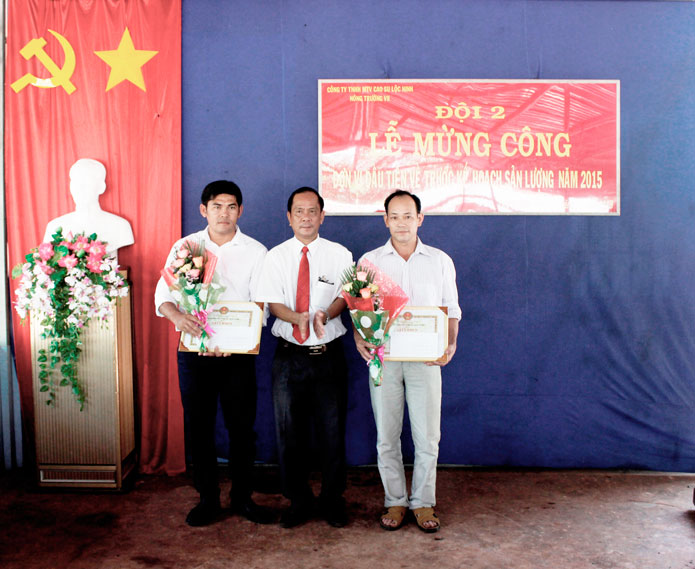 Theo báo cáo, đến hết ngày 11/11/2015, Đội 2 đã về trước kế hoạch sản lượng 50 ngày, ước tính đến cuối năm tỷ lệ vượt sẽ là 20%. Riêng Tổ 1 - Đội 2 đã về trước kế hoạch sản lượng 57 ngày (4/11/2015). Cụ thể, năm 2015, Đội 2 được giao 254 tấn mủ quy khô, trong đó tỷ lệ mủ tạp trên 25%. Dự kiến đến hết ngày 31/12/2015, Đội 2 sẽ thực hiện 304 tấn mủ quy khô, đạt 120% kế hoạch sản lượng năm 2015, năng suất đạt 2,6 tấn/ha.