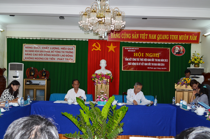 Ngày 15/4/2014 tại Công ty TNHH MTV Cao su Lộc Ninh tổ chức Hội nghị Tổng kết công tác thực hiện giao ước thi đua năm 2013 – Phát động và ký kết giao ước thi đua năm 2014.