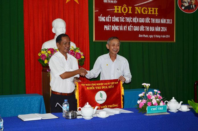 Tại buổi tổng kết Công ty CP cao su Đồng Phú đã bàn giao nhiệm vụ Khối Trưởng cho Công ty TNHH MTV Cao su Lộc Ninh và bầu Công ty TNHH MTV Cao su Quảng Nam làm Khối Phó; Thực hiện ký kết giao ước thi đua trong năm 2014.