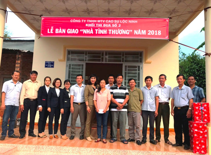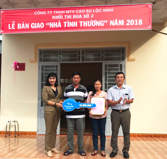 Ngày 26/12/2018 Khối thi đua số 2 (Công ty TNHH MTV Cao su Lộc Ninh) tổ chức Lễ trao tặng “Nhà tình thương” cho chị Trần Thị Thu Huyền là công nhân cạo mủ thuộc Đội 2 - NT I.