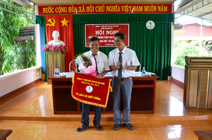 Với những thành tích xuất sắc trong hoạt động của Khối cấp cơ sở, đơn vị Xí nghiệp CKCB Lộc Hiệp được Tập đoàn Công nghiệp Cao su Việt Nam tặng Cờ Thi đua xuất sắc năm 2017; tặng Bằng khen cho 02 đơn vị Xí nghiệp Xây lắp và Bệnh viện Đa khoa. Công ty tặng giấy khen cho Cơ quan Công ty.