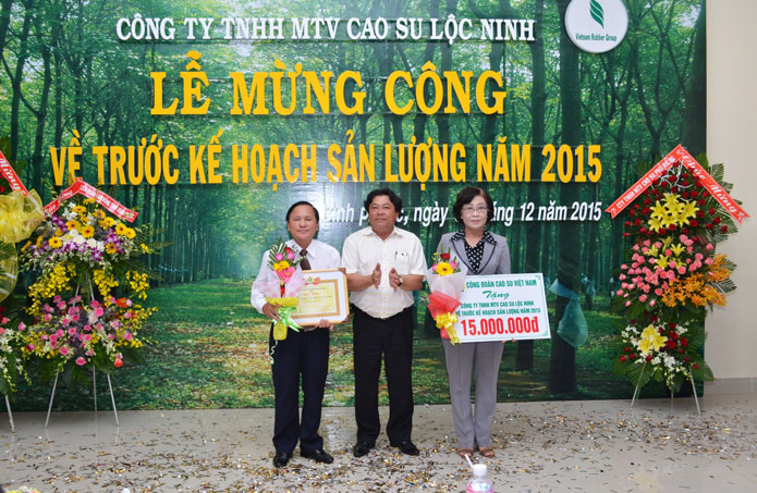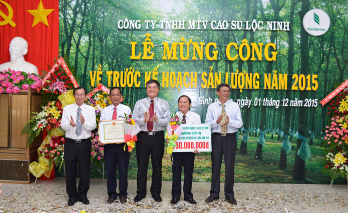 Sáng 01/12/2015, Công ty TNHH MTV Cao su Lộc Ninh tổ chức Lễ mừng công về trước kế hoạch sản lượng năm 2015. Dự lễ có các Ông Võ Sỹ Lực - Chủ tịch Hội Đồng Thành Viên (HĐTV) Tập đoàn Công nghiệp Cao su Việt Nam (VRG); Ông Nguyễn Tiến Đức, Nguyễn Văn Tân - Phó Tổng Giám đốc Tập đoàn; Ông Phan Mạnh Hùng – Chủ tịch CĐCS VN; Ông Lâm Văn Phúc - Chủ tịch LĐLĐ tỉnh Bình Phước; Bà Tôn Ngọc Hạnh - Bí thư Tỉnh Đoàn; lãnh đạo huyện Lộc Ninh các đơn vị kết nghĩa, đơn vị trực thuộc.