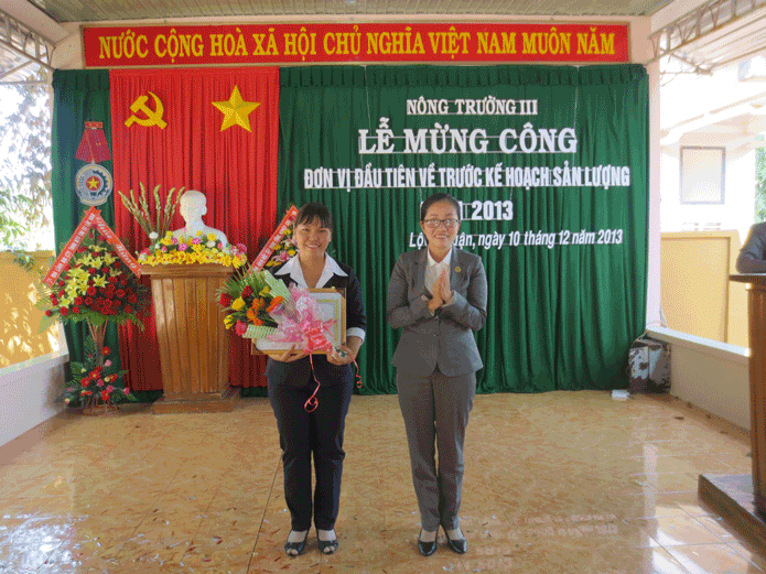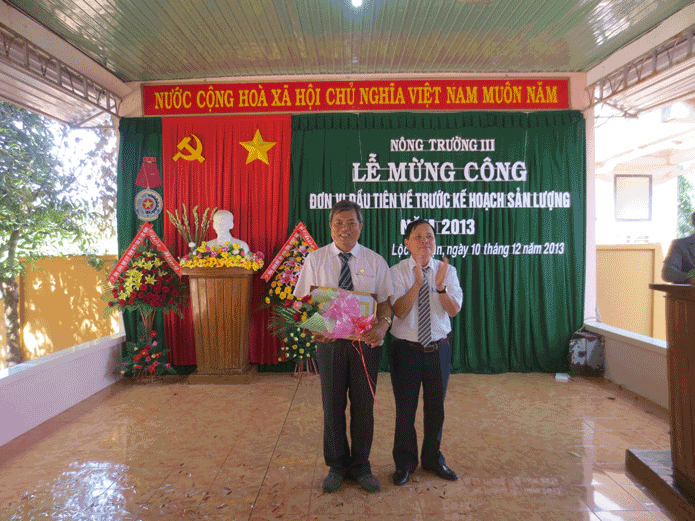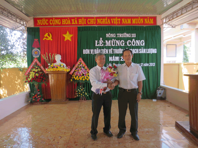 Vào lúc 09 giờ 30 ngày 10/12/2013 Nông trường III tổ chức Lễ mừng công hoàn thành kế hoạch sản lượng năm 2013.