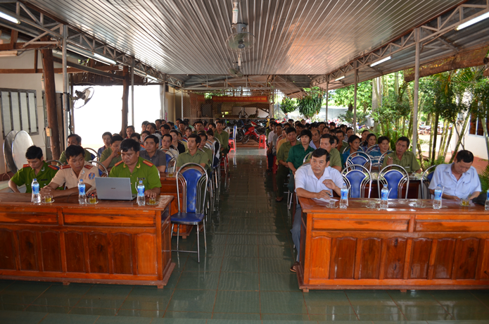 Buổi tuyên truyền tại các đơn vị gồm có: Về phía công an Huyện có các đồng chí trong Ban chỉ huy Đội Cảnh sát điều tra tội phạm (CSĐTTP) về TTXH, CSĐTTP về Ma túy, Cảnh sát GT-TT trực tiếp phổ biến tuyên truyền; Phòng Thanh tra – BVQS đại diện cho Công ty; Ban Lãnh đạo cùng các cán bộ chủ chốt và CNLĐ của 07 đơn vị.
