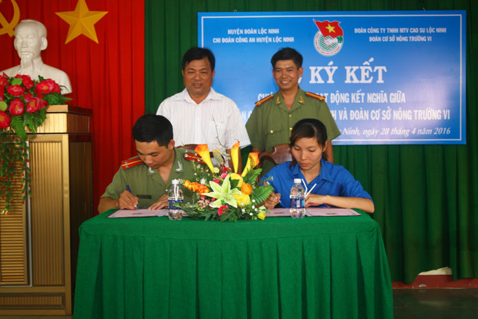 LỄ KÝ KẾT PHỐI HỢP HOẠT ĐỘNG GIỮA ĐOÀN CƠ SỞ NÔNG TRƯỜNG VI VÀ CHI ĐOÀN CÔNG AN HUYỆN LỘC NINH