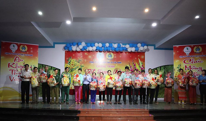 Qua đó, Ban lãnh đạo, Ban Tổng Giám đốc, Công đoàn, Đoàn thanh niên Công ty đã trao tặng 110 phần quà cho 110 người lao động có hoàn cảnh khó khăn, mỗi phần quà trị giá 1.000.000 đồng. Ngoài ra trong đêm họp mặt còn có nhiều chương trình đặc sắc như biểu diễn văn nghệ, quay số may mắn, liên hoan trò chuyện… tất cả tạo nên một buổi tối sum vầy ấm áp, góp phần động viên người lao động an tâm công tác và tiếp tục cống hiến cho đơn vị và Công ty.