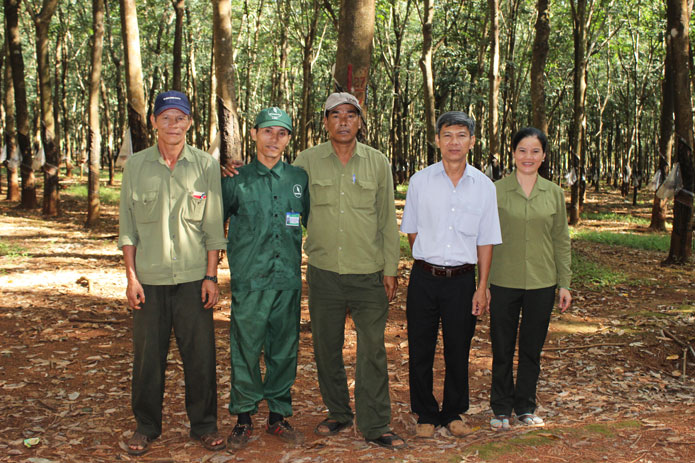 Ông Phan Văn Hòa - Chủ tịch công đoàn Nông trường V cho biết: Nông trường có 4 công nhân về trước 90 ngày, 6 công nhân hoàn thành kế hoạch sản lượng trước 60 ngày. So với năm 2014, Nông trường tăng 3 công nhân về trước 90 ngày và 1 công nhân về trước 60 ngày. Vợ chồng công nhân Đoạn Văn Quý và Bùi Thị Xuyến trở thành điển hình của Nông trường và Công ty khi cùng về trước kế hoạch sản lượng trước 90 ngày. Đây là trường hợp rất đặc biệt của nông trường nói riêng và công ty nói chung. Từ khi công đoàn phát động phong trào 3 tháng nước rút về trước kế hoạch sản lượng, vợ chồng anh Quý đều về nhất, nhì toàn Nông trường. Hai vợ chồng đã được Công ty, Tập đoàn và Công đoàn Công nghiệp cao su Việt Nam khen thưởng nhiều danh hiệu.