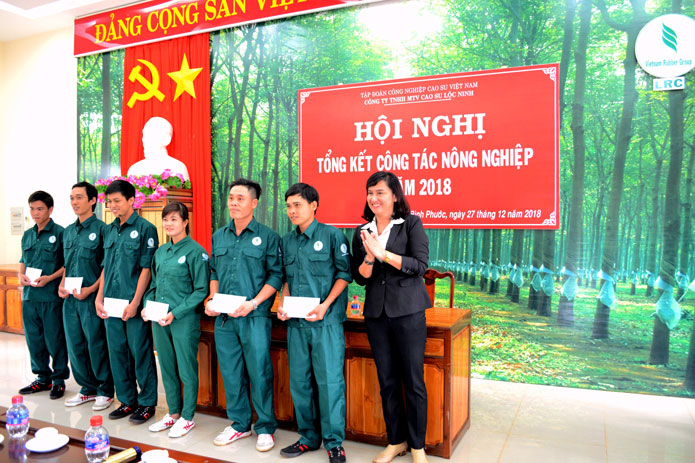 Để ghi nhận, biểu dương các tập thể, cá nhân đạt kết quả đáng kể trong thời gian qua, căn cứ vào Quyết định khen thưởng của Tập đoàn, Công ty trao thưởng các đơn vị có nhiều năm liền đạt năng suất 2 tấn/ha; các thí sinh đạt thành tích hội thi bàn tay vàng cấp Ngành; nhóm sáng tạo trẻ Công ty đạt giải thưởng “Sáng tạo xanh”.