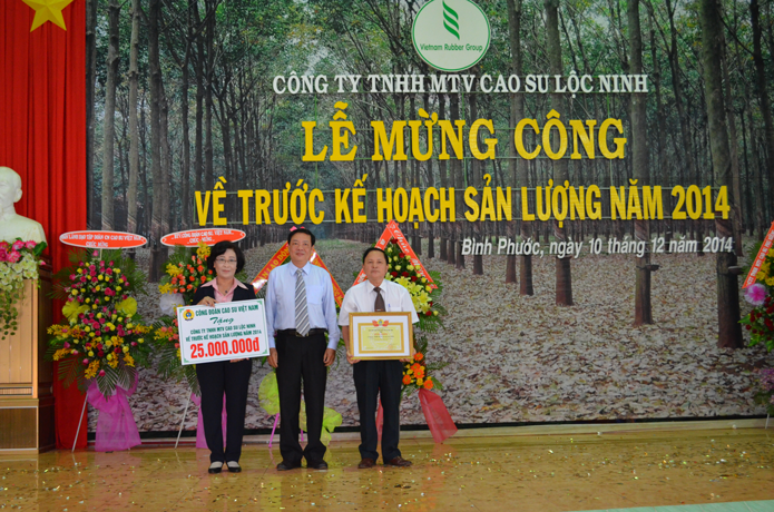 Ngày 10/12/2014 Công ty TNHH MTV cao su Lộc Ninh tổ chức lễ mừng công hoàn thành kế hoạch sản lượng năm 2014.