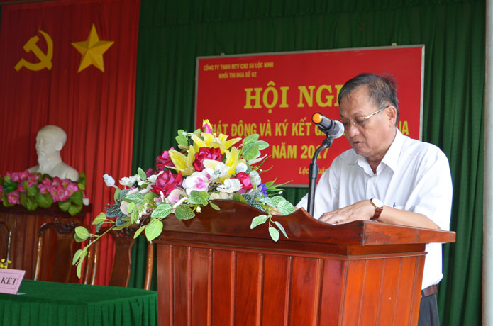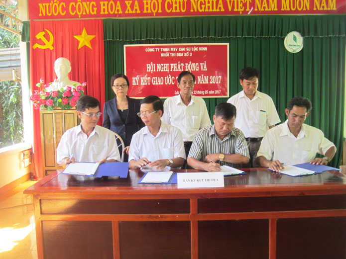 Thực hiện chỉ đạo của Tập đoàn Công nghiệp Cao su Việt Nam về việc thành lập khối thi đua cấp Nông trường, Nhà máy, Xí nghiệp trong các đơn vị thành viên. Ngày 29/3/2017 Công ty TNHH MTV Cao su Lộc Ninh đã quyết định thành lập 03 Khối thi đua cấp Nông trường, Nhà máy, Xí nghiệp. Trong đó 02 khối gồm các nông trường trực tiếp khai thác mủ và 01 khối gồm các đơn vị sản xuất chế biến, phục vụ.