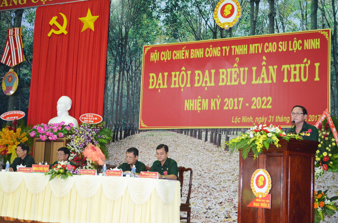 Ngày 31/5/2017 Công ty TNHH MTV Cao su Lộc Ninh long trọng tổ chức Đại hội đại biểu Hội Cựu chiến binh (CCB) lần thứ I nhiệm kỳ 2017 - 2022. Đến dự đại hội có đồng chí Huỳnh Văn Nước - Ủy viên BCH Trung ương Hội CCB Việt Nam, Bí thư Đảng Đoàn, Chủ tịch Hội CCB tỉnh Bình Phước; Các đồng chí trong Ban Lãnh đạo, các Trưởng, Phó phòng ban, lãnh đạo các đơn vị trực thuộc Công ty TNHH MTV Cao su Lộc Ninh; Các đơn vị bạn gồm đại diện lãnh đạo Hội CCB huyện Lộc Ninh, Bù Đốp, Hội CCB Cao su Bình Long, Phú Riềng, Đồng Phú, Cao su Bình Phước, Khối doanh nghiệp Tỉnh và 80 đại biểu đại diện cho hơn 190 hội viên.