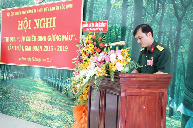 Đến dự và phát biểu chỉ đạo, Đại tá Huỳnh Văn Nước - Ủy viên BCH Trung ương Hội CCB Việt Nam, Chủ tịch Hội CCB tỉnh Bình Phước đánh giá cao kết quả hoạt động gắn với phong trào thi đua lao động sản xuất chung của Công ty mang lại hiệu quả thiết thực góp phần cùng Công ty hoàn thành xuất sắc nhiệm vụ giai đoạn 2016 – 2019. Qua đó nhấn mạnh Hội cần phát huy vai trò thế mạnh đã được Đảng và Chính quyền quan tâm hỗ trợ để xứng đáng giữ vững bản chất truyền thống “Bộ đội cụ Hồ”.