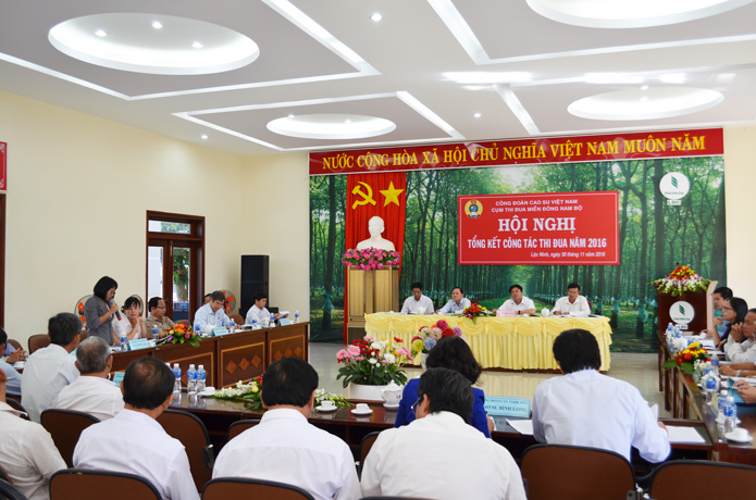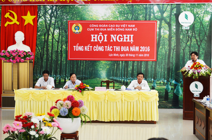 Trong không khí toàn Ngành đang khẩn trương, tích cực phấn đấu trong phong trào Thi đua nước rút hoàn thành vượt mức kế hoạch sản lượng 3 tháng cuối năm 2016. Sáng ngày 30/11/2016 tại Công ty TNHH MTV Cao su Lộc Ninh, các Công đoàn của Cụm thi đua Miền Đông Nam bộ đã tiến hành tổ chức Hội nghị Tổng kết công tác thi đua năm 2016.