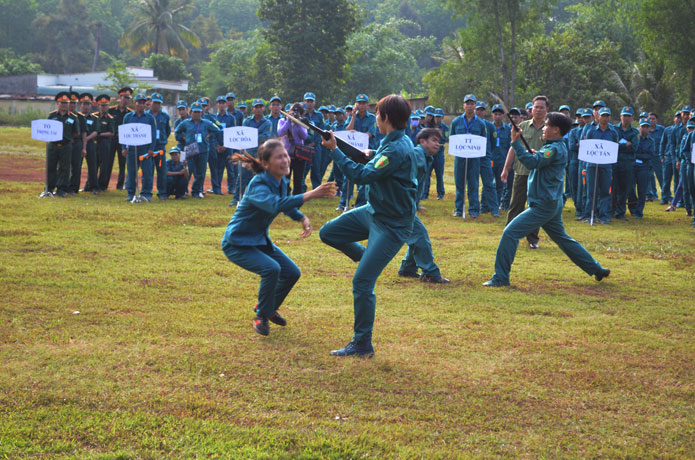 Các vận động viên tham gia thi đấu 3 nội dung gồm: Võ dân quân tự vệ, bắn nỏ và chạy vũ trang.