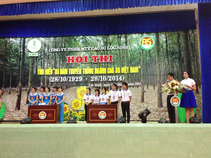 Trong 2 ngày 03-04/7/2014, Công ty phối hợp cùng Công đoàn và Đoàn Thanh niên đã tổ chức Hội thi “tìm hiểu 85 năm Truyền thống Ngành Cao su Việt Nam” (28/10/1929-28/10/2014) với chủ đề “Cao su Lộc Ninh – Tự hào truyền thống, vững bước đi lên”. Hội thi có 12 đội tham gia đến từ các Nông trường, Xí nghiệp, Bệnh viện Đa khoa, Cơ quan và Công ty VKETI (Campuchia), có 60 thí sinh dự thi và hơn 100 diễn viên tham gia hỗ trợ cho các phần thi thêm sinh động và phong phú.