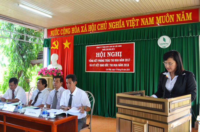 Ngày 13/4/2018 tại Xí nghiệp CKCB Lộc Hiệp Khối thi đua số 3 tổ chức Hội nghị tổng kết thi đua năm 2017, phát động và ký kết giao ước thi đua năm 2018. Đồng chủ trì hội nghị ông Phạm Ngọc Tăng - Giám đốc XN CKCB Lộc Hiệp (Khối trưởng) và ông Nguyễn Minh Hoàng - Giám đốc XN Xây lắp (Khối Phó).