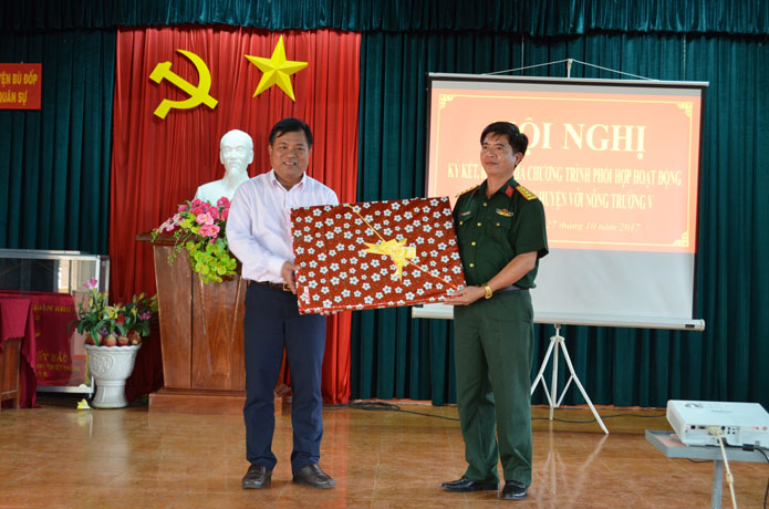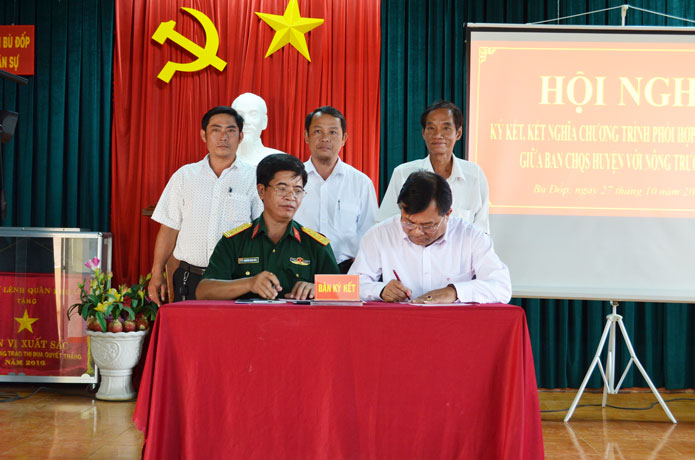 KÝ KẾT PHỐI HỢP HOẠT ĐỘNG GIỮA BCH QUÂN SỰ BÙ ĐỐP VỚI NÔNG TRƯỜNG V