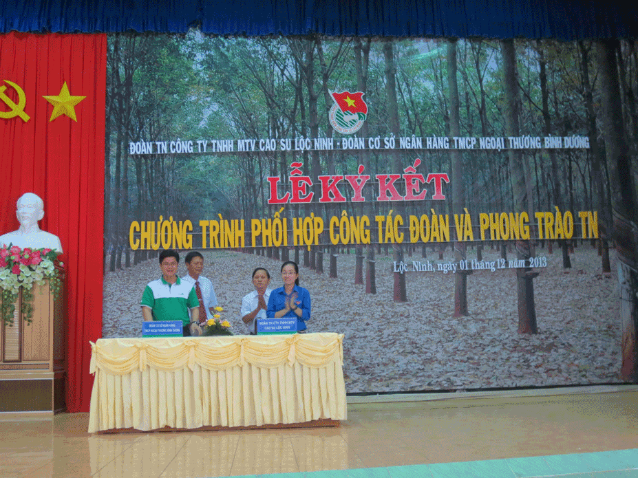 Ngày 01/12/2013 Đoàn thanh niên Công ty TNHH MTV Cao su Lộc Ninh và Đoàn cơ sở Ngân hàng TMCP ngoại thương Bình Dương đã tổ chức lễ ký kết chương trình phối hợp công tác đoàn và phong trào TTN giai đoạn 2013 – 2017.