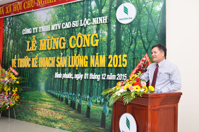 Phát biểu tại Lễ mừng công, Thay mặt Lãnh đạo VRG, Ông Võ Sỹ Lực - Chủ tịch HĐTV ghi nhân những kết quả đạt được của Công ty trong năm qua, đặc biệt là chỉ tiêu thực hiện sản lượng, về trước kế hoạch 38 ngày của Công ty. Dự báo năm 2016, ngành cao su sẽ tiếp tục gặp khó khăn do giá mủ giảm sâu, ông Võ Sỹ Lực đề nghị, Công ty cần tiếp tục ra sức thi đua yêu nước, phát huy phẩm chất, truyền thống tốt đẹp, tinh thần vượt qua khó khăn thử thách của công nhân Công ty Cao su Lộc Ninh qua các thời kỳ, duy trì và phát huy hiệu quả lợi thế sẵn có. Nhất là phải chăm lo đời sống người lao động tốt hơn nữa để duy trì nguồn lực, phát triển sản xuất bền vững.