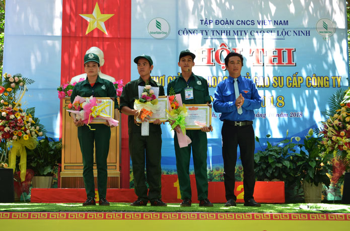Ông Nguyễn Trường Hải - Bí thư Đoàn TN Công ty TNHH MTV Cao su Lộc Ninh tặng giấy khen cho đoàn viên xuất sắc tại hội thi.