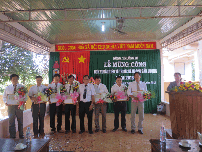 Vào lúc 09 giờ 30 ngày 10/12/2013 Nông trường III tổ chức Lễ mừng công hoàn thành kế hoạch sản lượng năm 2013.