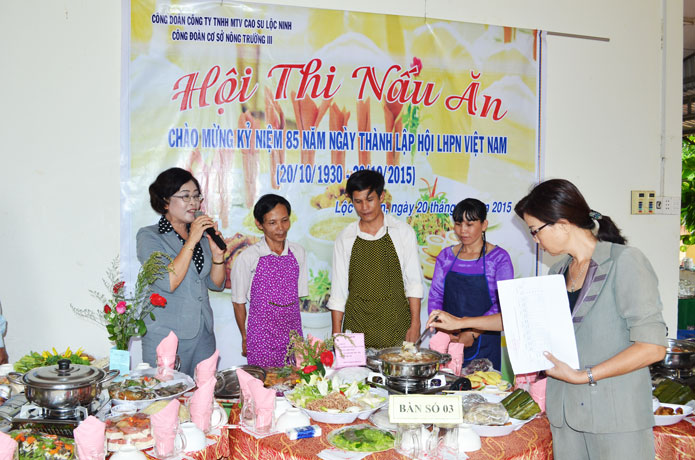 Hòa chung khí thế của cả nước kỷ niệm 85 năm ngày Phụ nữ Việt Nam (20/10/1930 - 20/10/2015. Trong các ngày 19, 20/10/ 2015, Công đoàn cơ các sở các Nông trường trực thuộc Công ty TNHH MTV cao su Lộc Ninh đồng loạt tổ chức nhiều hoạt động họp mặt, tọa đàm, ẩm thực, giao lưu VHVN - TDTT cho chị em phụ nữ là CB-CNVC-LĐ trong không khí sôi nổi, hào hứng. Dưới đây là một số hình ảnh tại các Nông trường.
