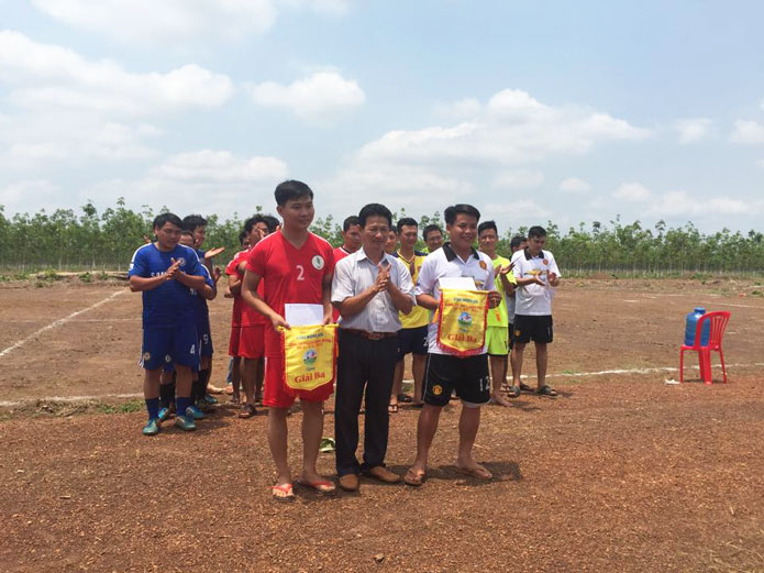 Đ/c Võ Sỹ Lực - Chủ tịch HĐTV Tập đoàn trao giải nhất cho đội bóng Nông trường III