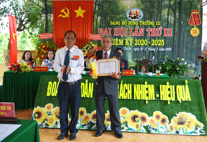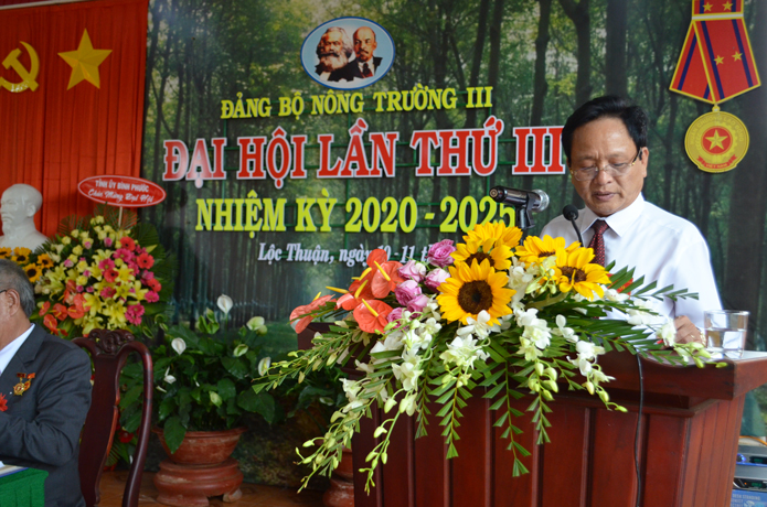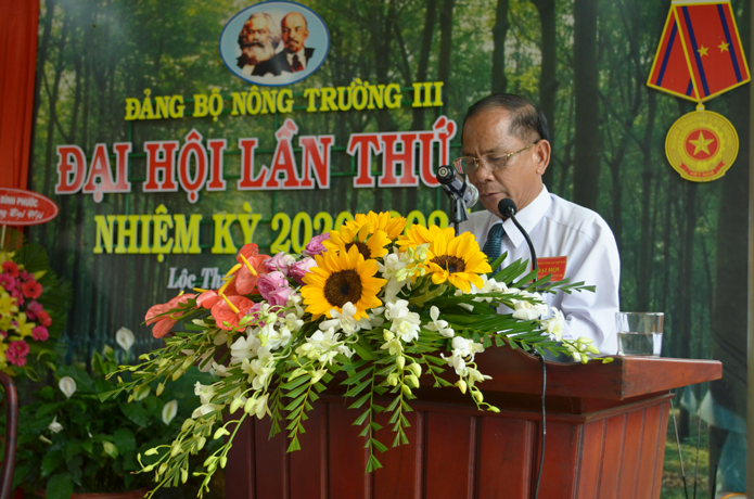 Trong 02 ngày 10, 11/3/2020, Đảng bộ Nông trường III, trực thuộc Đảng bộ Công ty TNHH MTV Cao su Lộc Ninh đã tổ chức Đại hội Đảng bộ lần thứ III nhiệm kỳ 2020 - 2025. Đây là đơn vị được Đảng ủy Công ty chọn làm điểm, thí điểm bầu trực tiếp Bí thư cấp ủy tổ chức Đại hội cấp Chi, Đảng bộ cơ sở. Đến dự đại hội, về phía Tỉnh ủy Bình Phước có Đ/c Lê Văn Uy - Ủy viên BTV, Trưởng Ban Nội chính Tỉnh ủy, Đ/c Phạm Phước Hải - Ủy viên BTV, Chủ nhiệm Ủy ban kiểm tra Tỉnh ủy. Đối với Đảng ủy Công ty có Đ/c Nguyễn Đức Tín - Bí thư Đảng ủy, Đ/c Nguyễn Quốc Vĩnh - Phó Bí thư Thường trực Đảng ủy, Đ/c Phan Tấn Hải - Tổng giám đốc Công ty cùng các đồng chí trong Ban Thường vụ Đảng ủy, BCH Đảng ủy; Đại diện lãnh đạo các Ban Đảng Công ty; Bí thư các Chi, Đảng bộ cơ sở, cùng 30 đ/c đảng viên đến từ 7 chi bộ trực thuộc Đảng bộ Nông trường đã về dự đông đủ.