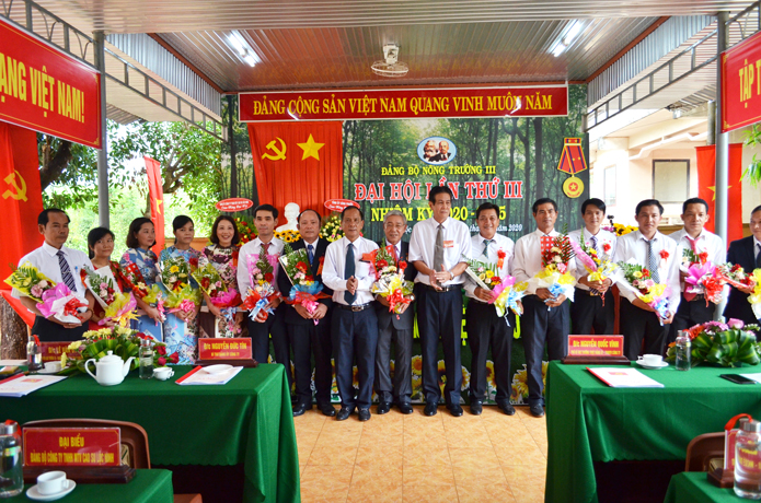Đại hội đã bầu Ban Chấp hành Đảng bộ Nông trường lần thứ III nhiệm kỳ 2020 - 2025 gồm 09 đồng chí, trong đó Ban Thường vụ Cấp ủy có 03 đồng chí, đồng chí Trần Thanh Bình được Đại hội bầu giữ chức vụ Bí thư cấp ủy Nông trường III nhiệm kỳ 2020 - 2025; đồng thời đại hội cũng đã bầu ra đoàn đại biểu dự Đại hội Đảng bộ Công ty lần thứ XIV nhiệm kỳ 2020 - 2025 gồm 10 đ/c. Phát biểu nhận nhiệm vụ, đồng chí Trần Thanh Bình - Bí thư Đảng ủy thay mặt Ban Chấp hành Đảng bộ Nông trường lần thứ III nhiệm kỳ 2020 - 2025 xin hứa sẽ tiếp tục phát huy truyền thống đoàn kết, kế thừa và phát huy những thành quả đã đạt được, huy động sức mạnh tổng hợp, xây dựng các chương trình, kế hoạch thực hiện phù hợp với tình hình thực tế của đơn vị để thực hiện thắng lợi Nghị quyết Đại hội Đảng bộ đề ra trong nhiệm kỳ tới.